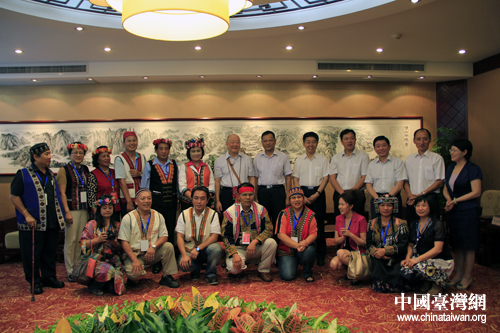 湖北省副省長田承忠25日下午在恩施會見了前來參加恩施女兒會的臺灣少數(shù)民族代表一行,會見后雙方合影。(中國臺灣網 楊麗 攝)