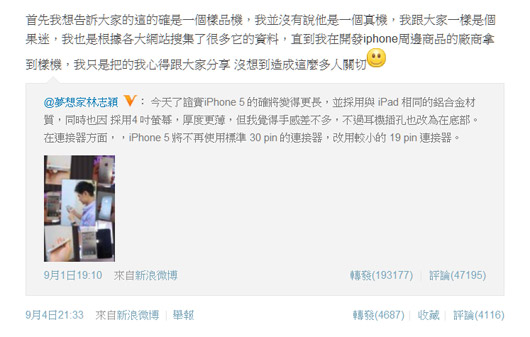 林志穎之前搶先曝光iPhone5被罵翻,現(xiàn)又被網(wǎng)友稱是先知。(圖片來自網(wǎng)絡(luò))