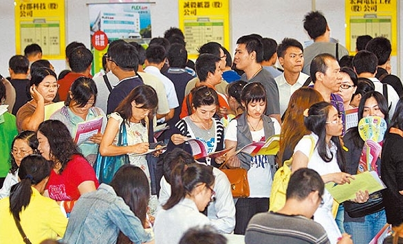 經(jīng)濟(jì)不景氣,勞委會(huì)舉辦的就業(yè)博覽會(huì),吸引不少求職者。資料照片來源:臺(tái)灣媒體