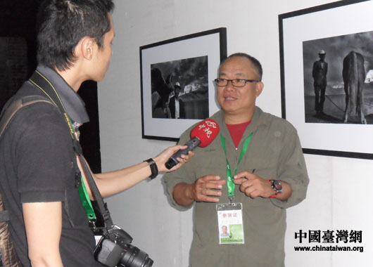 臺(tái)灣中視記者采訪臺(tái)灣攝影大師林添福先生。(中國(guó)臺(tái)灣網(wǎng) 郭慶娜 攝)