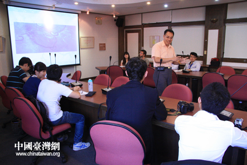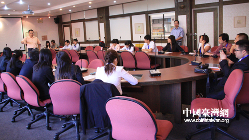 臺南大學張伯宇主任為大陸青年赴臺交流團介紹臺灣地理情況(中國臺灣網(wǎng) 王文英 攝)