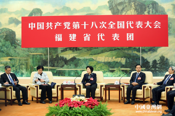 9日上午,中國共產黨第十八次全國代表大會福建省代表團在人民大會堂福建廳討論十八大報告并對中外記者開放。討論結束后,部分代表還回答了記者的提問。 (中國臺灣網 王偉 攝)