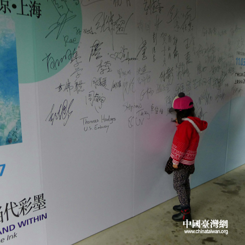 虞蘭因畫展在京開幕,小觀眾看板上在簽名留念 (攝影 吳小珊)