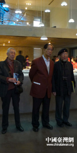 虞蘭因畫展在京開幕,前中國駐美國紐約總領事張偉超(中)與原紐約中華公所主席余保賢出席參觀(右)等(攝影 吳小珊)