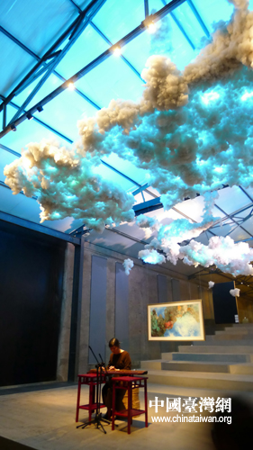 虞蘭因畫展在京開幕,蜀派古琴家范煜梅演繹名曲《秋水》(攝影 吳小珊)