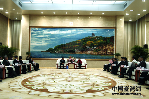 今天上午,安徽省副省長花建慧在馬鞍山會見了參加海峽兩岸電子信息博覽會的兩岸嘉賓。(中國臺灣網(wǎng) 王偉 攝)