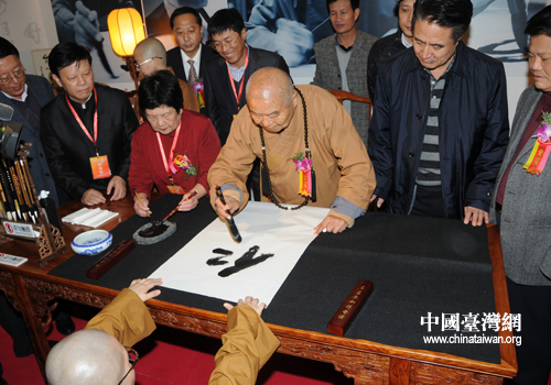 星云大師現場揮毫,寫下多幅墨寶。(中國臺灣網 馬萌攝)