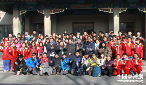參訪結束后雙方在歡樂的氛圍中合影留念,希望這樣的交流在兩岸學生之間更頻繁更密切。(中國臺灣網 孟雅詩 攝)