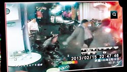 臺北市議員顏圣冠辦公室主任陳宥祥(左一戴眼鏡者)在廣州街小巷內與吳姓姐弟發生沖突,陳不但踹了吳姓孕婦,還與友人對倒地的吳男不斷狠踹痛毆。圖片來自臺灣《中國時報》