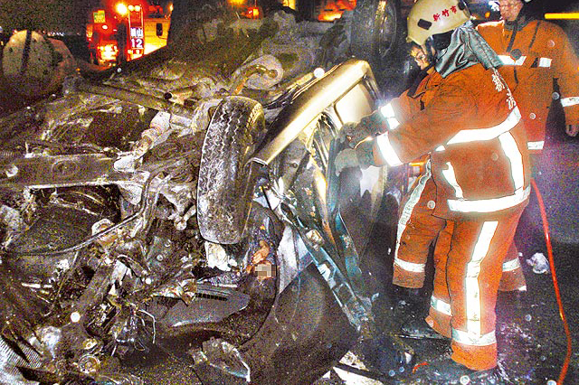 辦案交警指出,車禍死傷8人分屬兩輛車,一輛南下廂型車遭水泥管撞上,車上一家6口參加喜宴途中遇險,名叫李盈昀(24歲)的女性坐右前座遭遇正面撞擊,頭顱骨折傷重不治,坐后座的李佳玟(22歲)則頭顱蜘蛛網(wǎng)膜破裂,仍在加護病房救治。另一輛車則是北上跟在聯(lián)結(jié)車后面,車上坐一對情侶,男的受傷,女的則頭部遭重創(chuàng)不治。