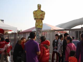 中臺灣燈會所在的圓滿戶外劇場舉辦“和奧斯卡小金人合照集氣”活動(圖片來自臺灣“中廣新聞網”)