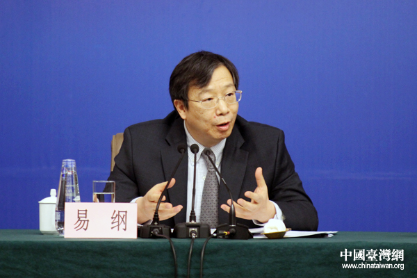 中國人民銀行副行長、國家外匯管理局局長易綱今天表示,考慮到兩岸貿易投資的發展有比較多的需求,未來有必要的話,可以商談兩地的貨幣互換協議。(中國臺灣網 何建峰 攝)