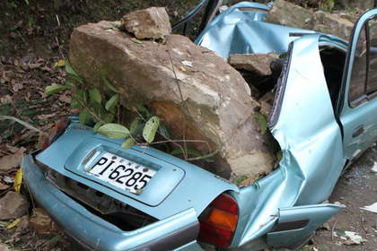 林姓男車子在南投草屯雙冬山區被滾石砸中。圖片來自臺灣媒體