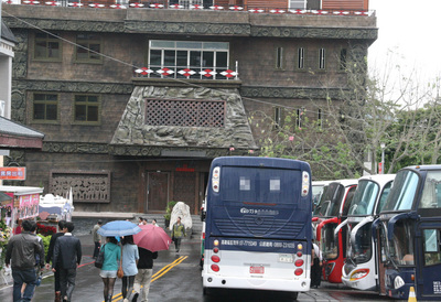 臺灣開放大陸游客后,景點業者說,大部分未與旅行社綁約的店家受惠有限。圖為日月潭地區專門做陸客團生意的大型藝品店,停車場常停滿游覽車。圖片來自臺灣媒體