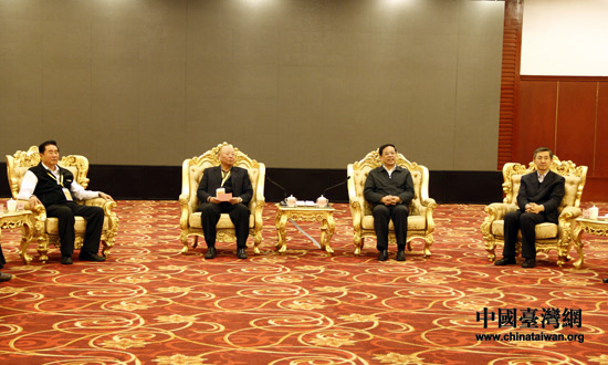 4月10日下午,河南省政協主席葉冬松在鄭州會見了參加癸巳年黃帝故里拜祖大典的臺灣統派人士和退役將領參訪團。(中國臺灣網 李丹 攝)