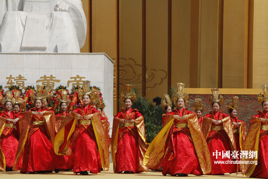4月12日,舞蹈演員在癸巳年黃帝故里拜祖大典上表演樂舞敬拜。(中國臺灣網 李丹 攝)