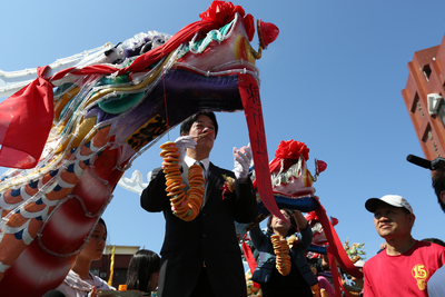 臺南市國際龍舟錦標賽6月8日登場,市長賴清德15日為參賽龍舟點睛。(圖片來自臺媒)
