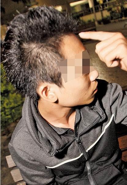 徐姓少年指著頭說遭警毆打,還被逼吃狗屎。(圖片來自臺媒)