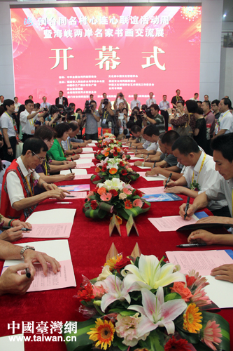 在下午舉行的儀式上,海峽兩岸名家書畫交流周同期開幕。(中國(guó)臺(tái)灣網(wǎng)記者 楊麗)
