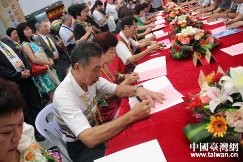 兩岸同名村代表在友好交流合作意向上簽字。(中國(guó)臺(tái)灣網(wǎng) 楊麗 攝)