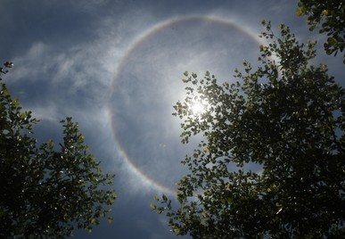 中國臺灣網7月2日消息 據臺灣媒體報道,臺灣高雄地區許多民眾今天中午都觀察到晴朗天空中的大太陽周邊出現奇特的光環,高雄氣象站表示,此為“日暈”現象,通常會出現在五、六千米的高層卷云中,卷云由懸浮在大氣中的冰晶所組成,在光的折射或反射下,會形成一圈光環或弧形狀,常出現在艷陽高照的中午,白天出現在太陽四周稱“日暈”,晚上出現在月亮旁則稱“月暈”。(中國臺灣網 高旭)