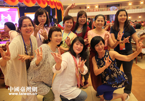 臺(tái)灣女嘉賓在歡迎晚宴上合影留念。(中國(guó)臺(tái)灣網(wǎng) 高斯斯 攝)