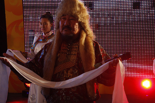 蒙古族漢在宴會上唱起歡迎的歌(中國臺灣網 蕪同 攝)