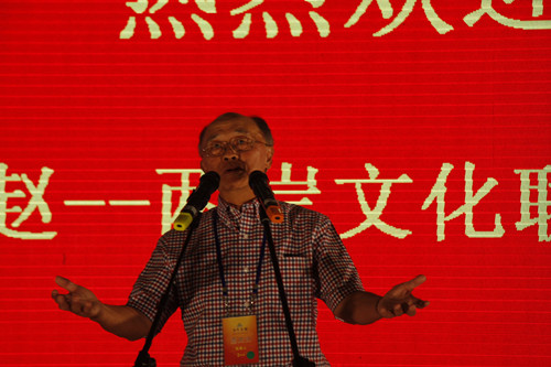 臺灣嘉賓團榮譽團長程建人在歡迎晚宴上致辭(中國臺灣網 蕪同 攝)