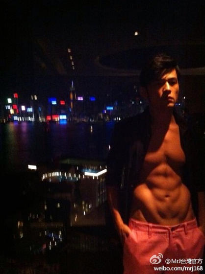 MrJ微博18日也曬出一張周杰倫露出性感人魚線的照片。(圖片來自MrJ臺灣官方微博)