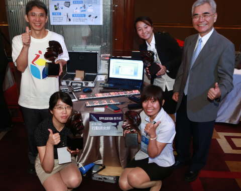 在獲獎(jiǎng)人部分,聯(lián)合大學(xué)電子工程學(xué)系3位大學(xué)女生顏資容、黃筠庭、黃鈺珊作品“組合式LED行動(dòng)電子廣告牌與無(wú)線傳輸之應(yīng)用”,由LED電子廣告牌發(fā)想,結(jié)合智能手持裝置,通過(guò)藍(lán)芽實(shí)時(shí)更新廣告牌訊息,也可以像拼樂(lè)高玩具一樣,將LED模塊任意組合。