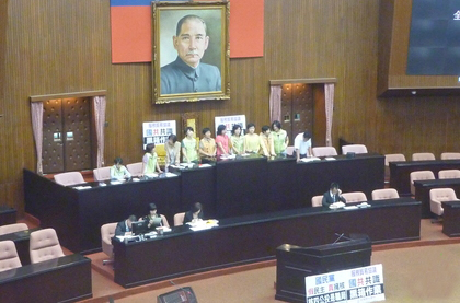 據報道,預計11時舉行的談話會還未開會,臺聯“立委”10時55分便已搶先霸占主席臺,民進黨“立委”葉宜津、林淑芬等人隨后也一同站上主席臺!傲⒎ㄔ洪L”王金平目前召集“朝野”黨鞭進行協商。(中國臺灣網 朱煉)