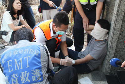 附近民眾表示,顏男并不是第一次出現在這里,當地里長趁顏男刀放在地上時趕緊踢掉,在救護人員趕到現場幫男子割腕的手進行包扎后,顏男便自行開車離去。