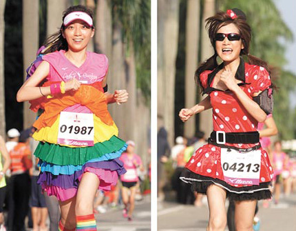 美津濃女性馬拉松11日清晨臺北登場,現場有如一場女性變裝PARTY。(來源:臺灣《中國時報》)