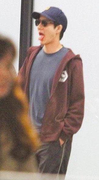 王力宏返臺步出桃園國際機場海關(guān),吐舌模樣俏皮。(圖片來自臺媒)