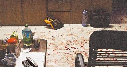 何家一樓客廳血跡斑斑,令人怵目驚心。(圖片來自臺媒)