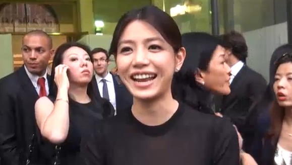 陳妍希出席米蘭Ferragamo秀,黑色上衣透視效果小露性感。(圖片來自臺媒)