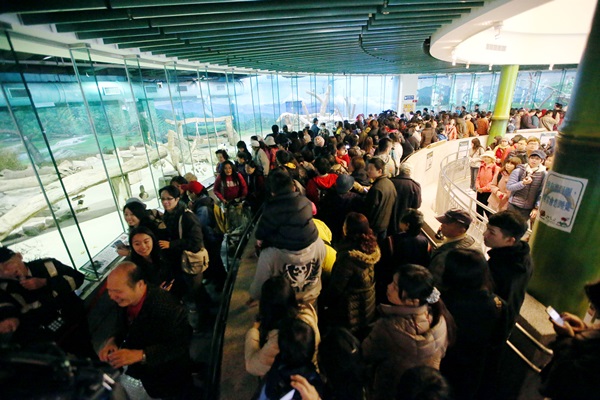 動物園門口清晨5、6時就出現搶看“圓仔”的頭香客,每個人都是全副武裝,包得緊緊就為了看“圓仔”。截至動物園9時開園前,排隊人龍已經延伸至捷運動物園站,約有500、600人。