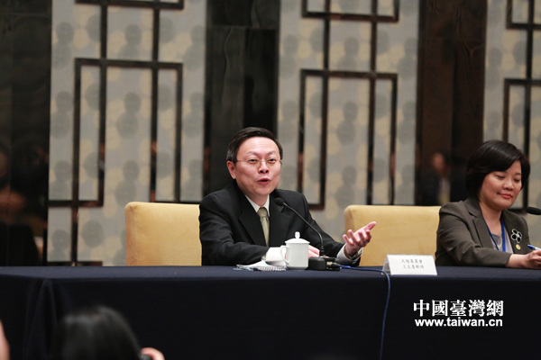 2月11日,臺灣陸委會負責人王郁琦在南京紫金山莊舉行記者會,說明“張王會”成果。(中國臺灣網 田云鵬 攝)