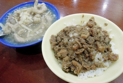 連勝文記者會后到三元號大啖平價魯肉飯,對面則是藝人賈靜雯。(臺媒圖)