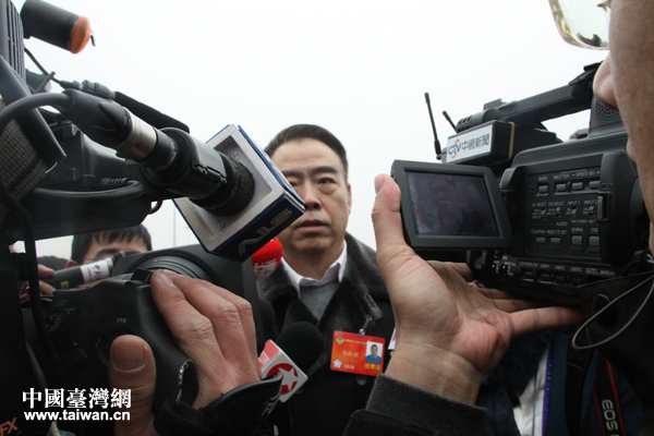 政協委員陳凱歌被記者團團圍住。(中國臺灣網 張潔 攝)