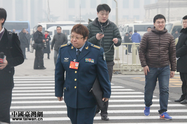 政協(xié)委員韓紅前往人民大會堂參加開幕會。(中國臺灣網(wǎng) 張潔 攝)