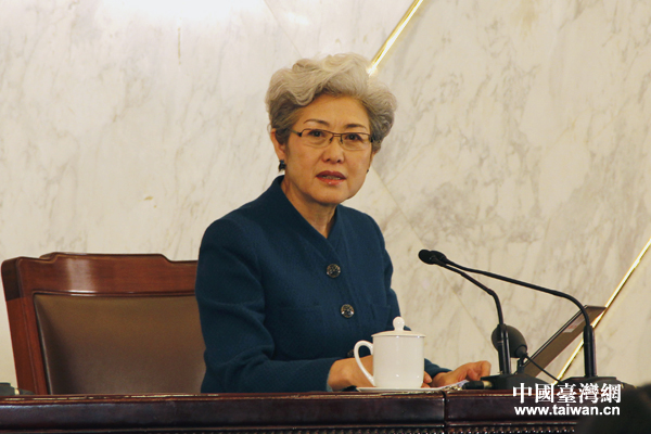 十二屆全國人大二次會議副秘書長、發言人傅瑩介紹了會議議程和人大工作相關情況,并回答中外記者的提問。(中國臺灣網記者 高斯斯 攝)