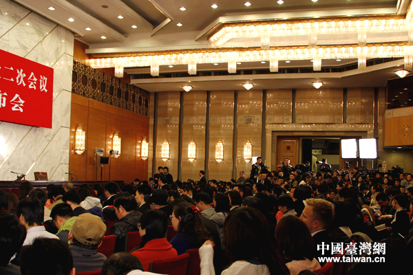 今天上午11時,十二屆全國人大二次會議在人民大會堂舉行新聞發布會。(中國臺灣網記者 高斯斯 攝)