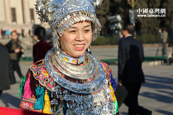 少數民族代表著民族服裝參會。(中國臺灣網 王思羽 攝)