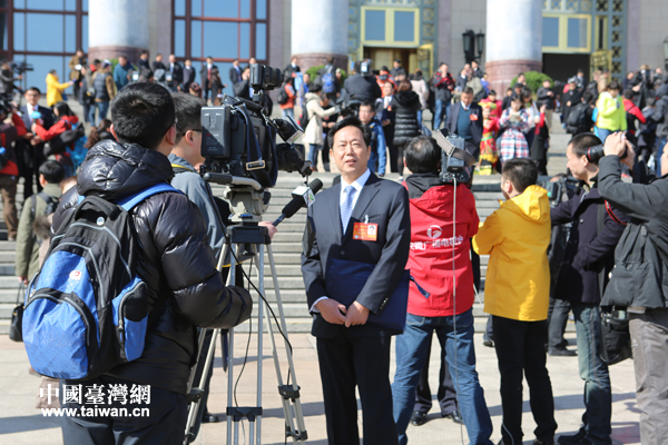 多位人大代表會后接受記者采訪。(中國臺灣網 王思羽 攝)