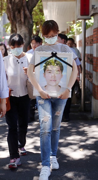 洪仲丘的姐姐抱著弟弟洪仲丘的遺照,難忍不舍。(圖片來自臺媒)