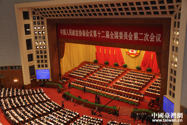 全國政協(xié)十二屆二次會議3月12日上午舉行閉幕會。(中國臺灣網(wǎng) 王怡然 攝)
