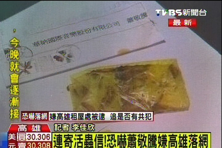涉郵寄面包蟲、冥紙恐嚇?biāo)嚾耸捑打v等人的賴姓通緝犯昨天晚間在高雄落網(wǎng)。(圖片來自臺媒)
