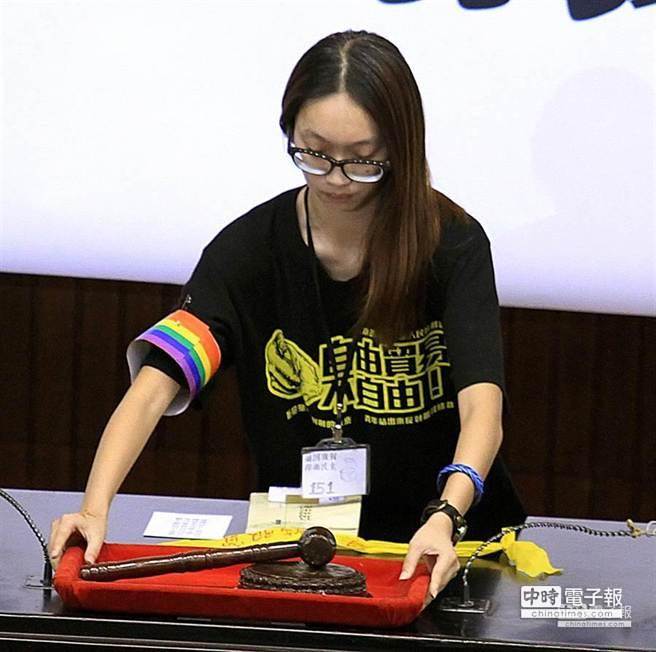 占領“立院”學生將議事槌歸還“國會”。 (圖片來自臺媒)