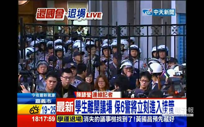 學生離開議場,警察立刻進入接管。(圖片來自臺媒)